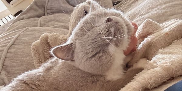 Muffin is a calm, sweet, and gentle girl who thrives in a quiet and loving environment. She has a soft, affectionate nature and enjoys quiet companionship, cozy spots, and simply being near her people. She would do best in a relaxed home where she can feel safe and cherished, she often curls up on her cat trees at the very top, and will come to your lap when all is calm in the home.